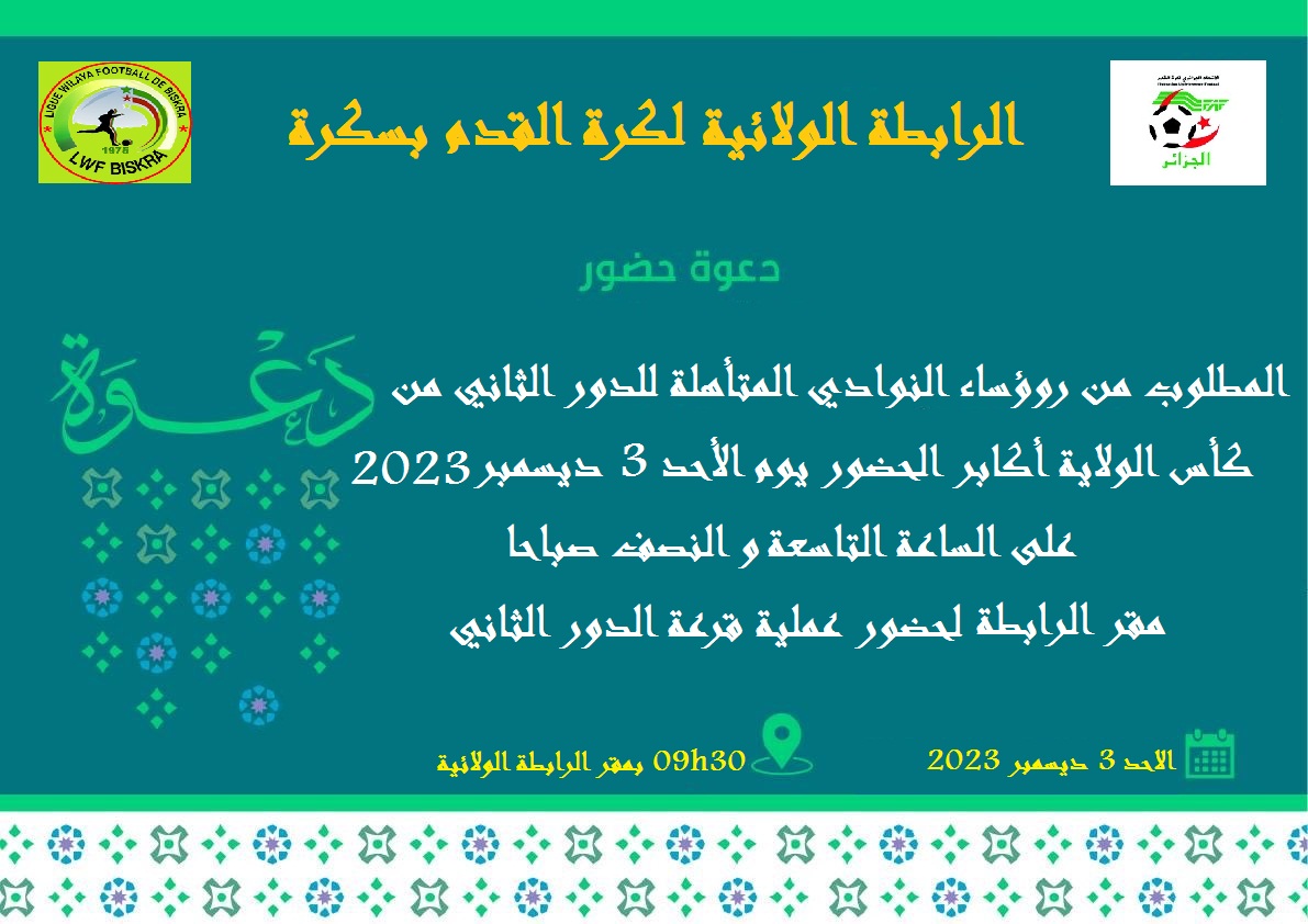 Tous droits réservés © 2016 - 2026 Ligue Wilaya de Football - Biskra.