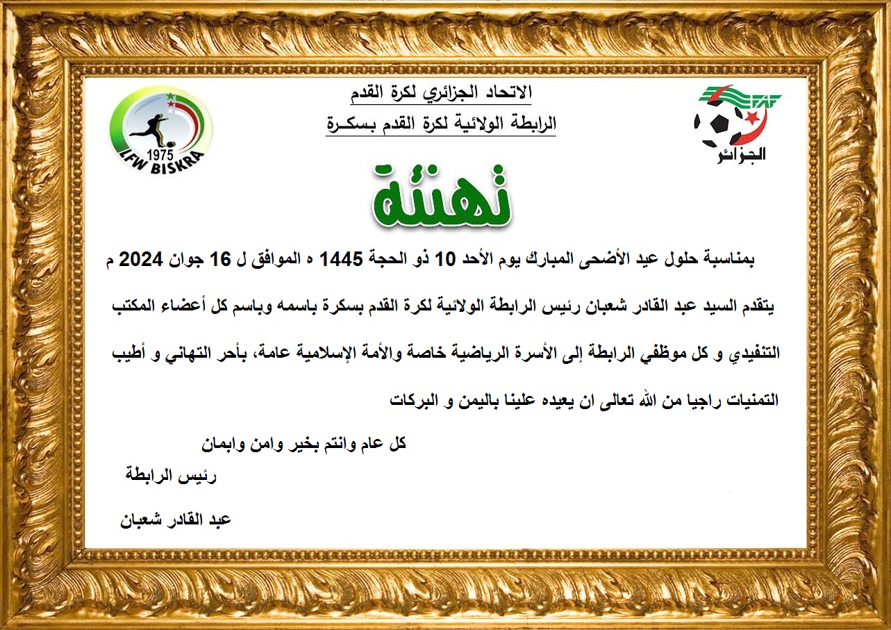 Tous droits réservés © 2016 - 2026 Ligue Wilaya de Football - Biskra.
