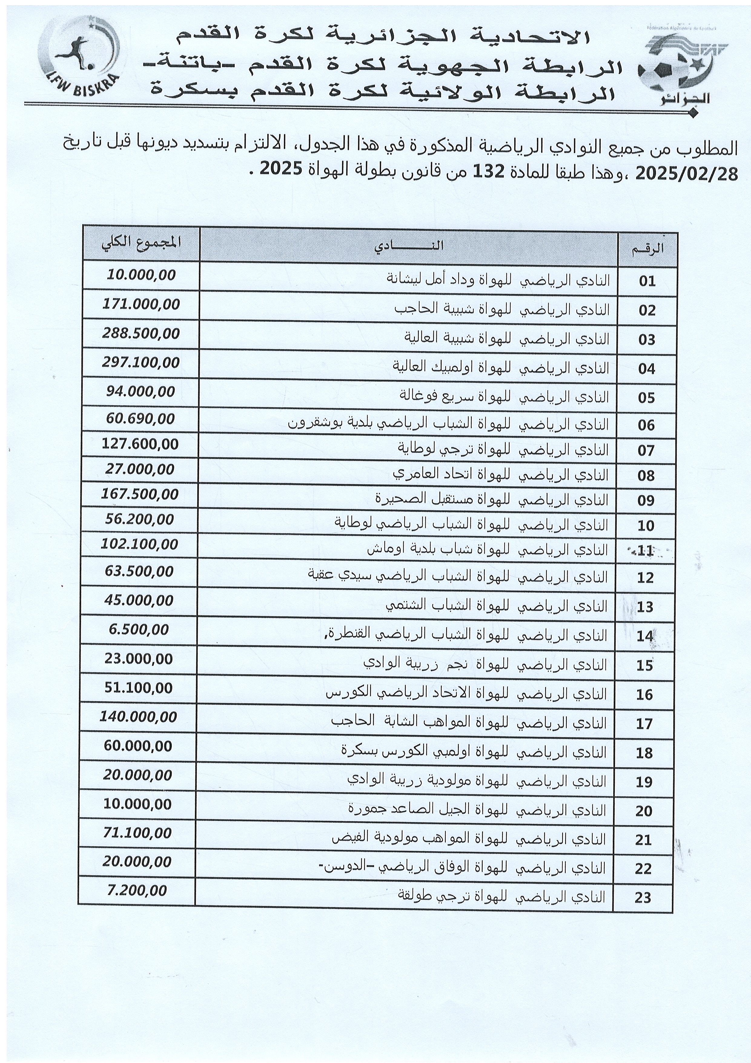 Tous droits réservés © 2016 - 2026 Ligue Wilaya de Football - Biskra.