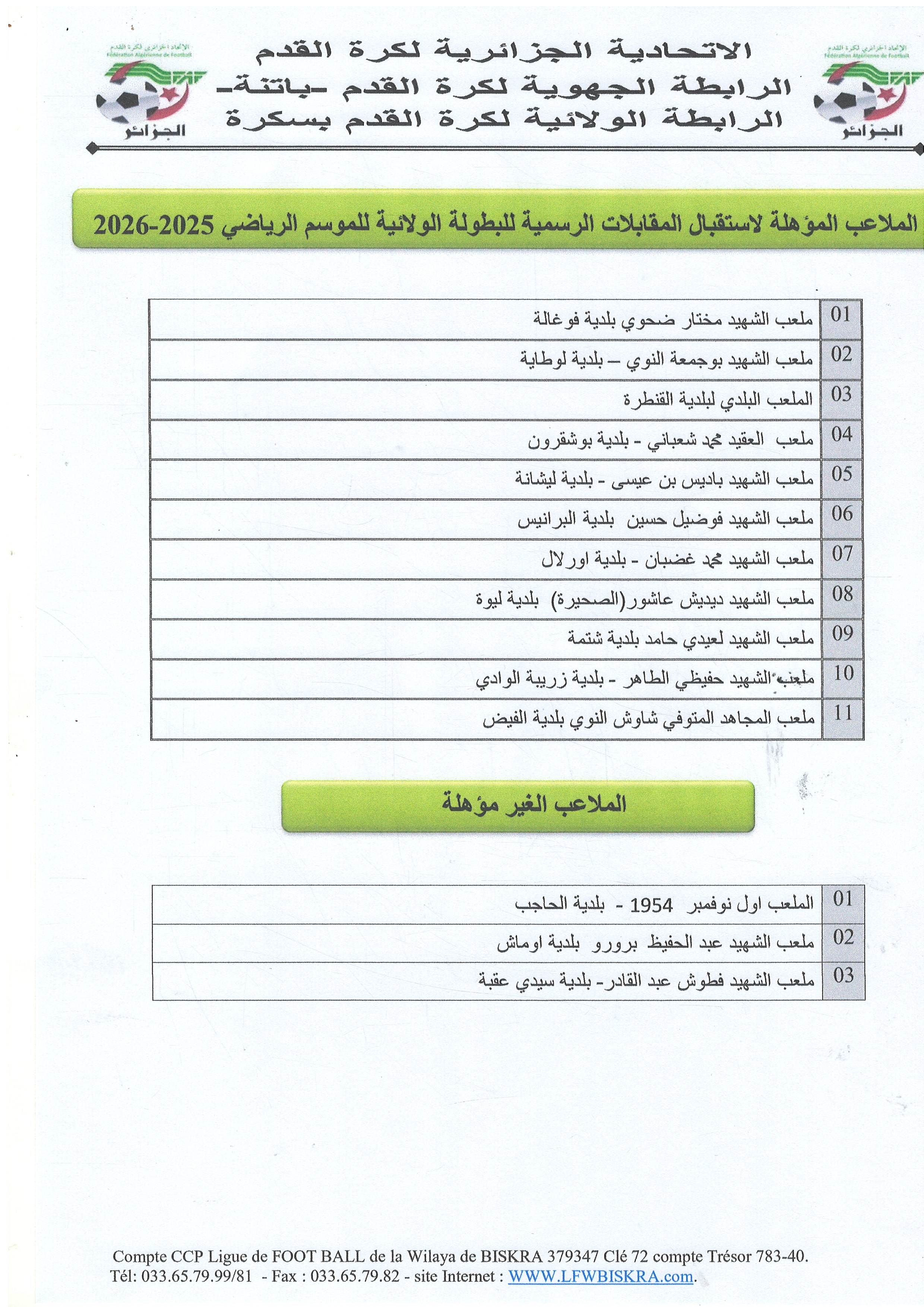 Tous droits réservés © 2016 - 2026 Ligue Wilaya de Football - Biskra.